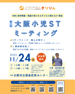 この度、5/30に開催した言語聴覚士による母親限定の無料相談会&交流会「大阪おかあさんミーティング」の第2回を開催します!子育てのヒントを見つけたり、お子さんの発達について専門家である言語聴覚士(ST)に気軽に相談できる貴重な機会です。